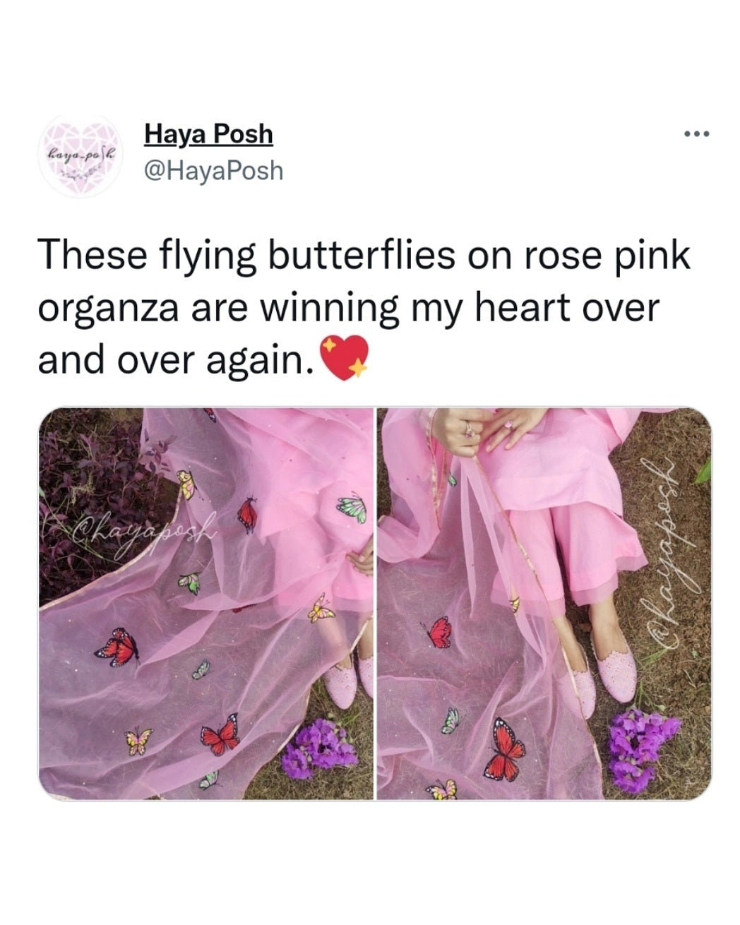 🦋ʙᴜᴛᴛᴇʀꜰʟʏ ᴘᴀʀᴀᴅɪꜱᴇ🦋 This delicate soulful peice is sure to make jaw drops. Meliticuously 𝐡𝐚𝐧𝐝 𝐩𝐚𝐢𝐧𝐭𝐞𝐝 butterflies on gorgeous rose pink dupatta paired with sweetheart neckline kurta. Organza detailing on bottom and sleeves hem make this piece super stunning.🌸