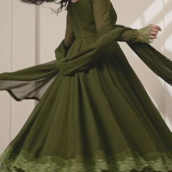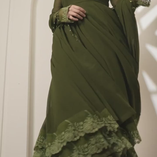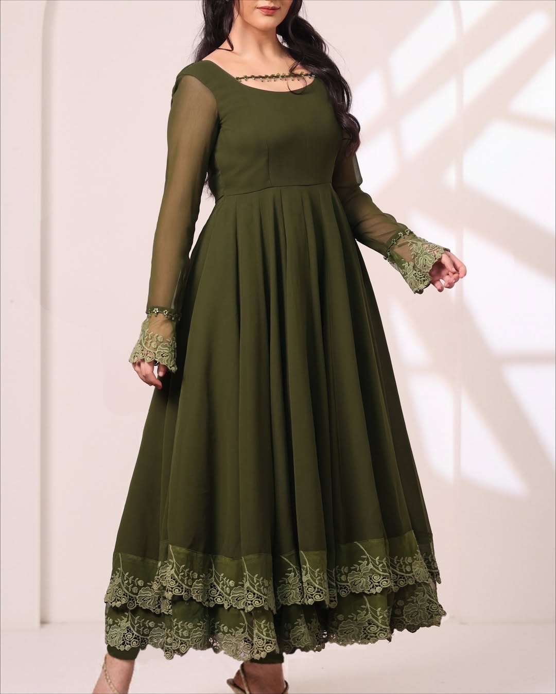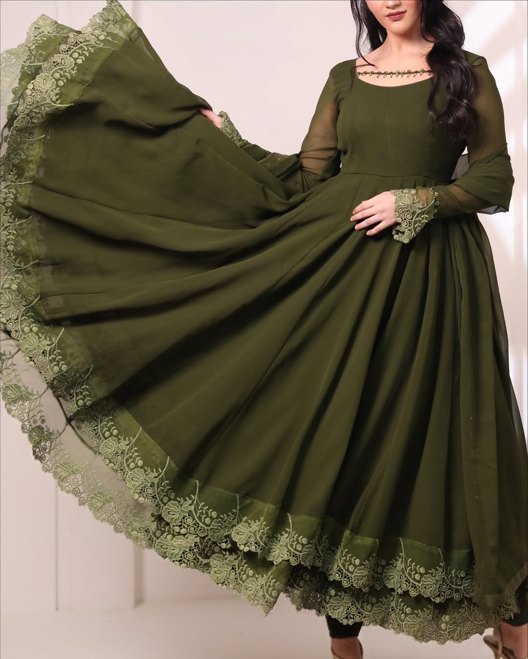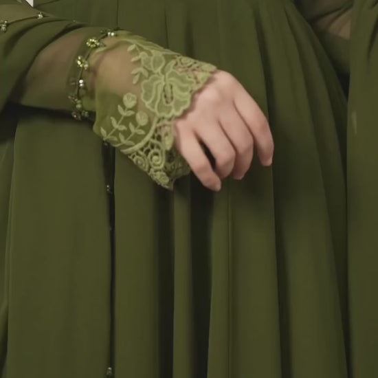 Here comes lacy floral detailed set in most refreshing colour of the season olive green!