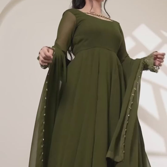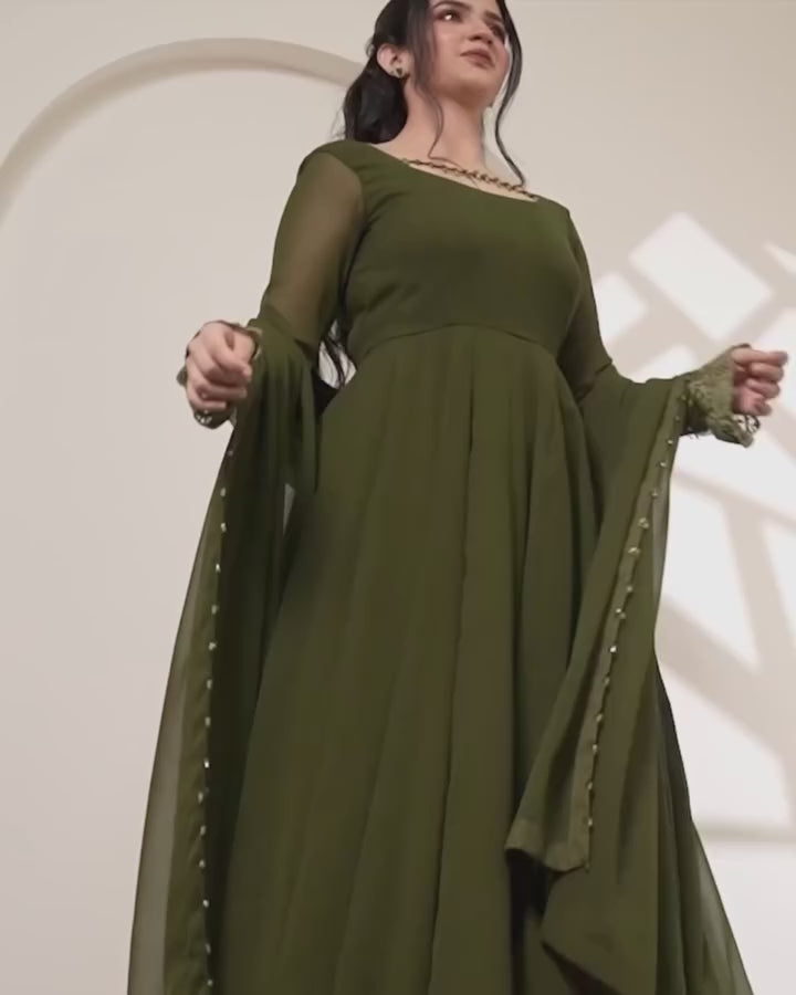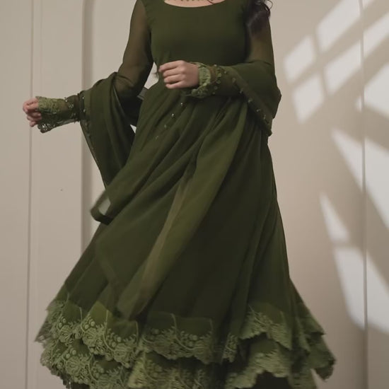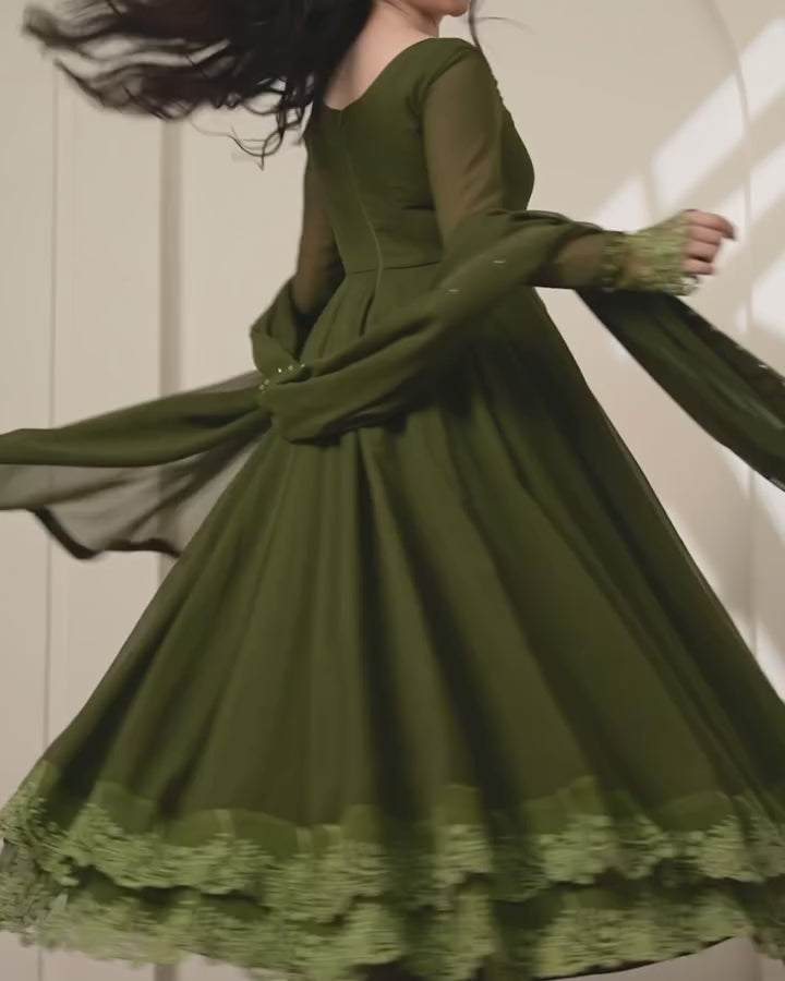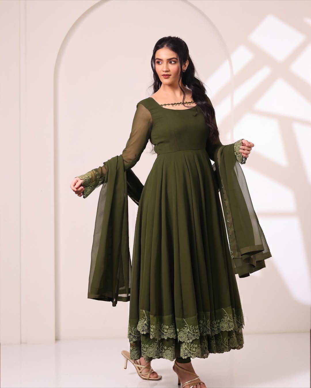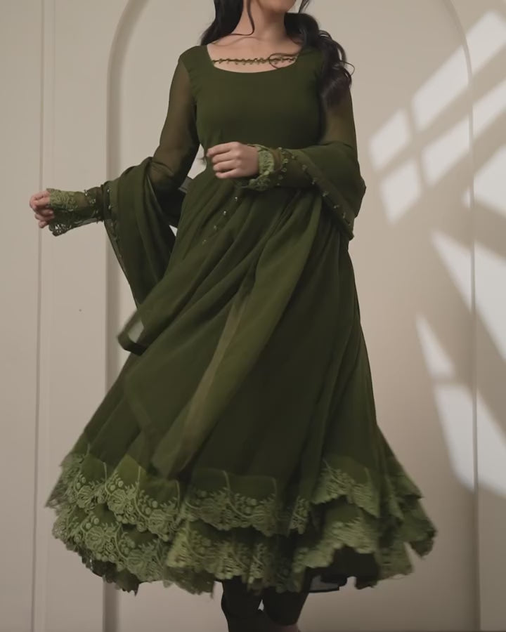 Here comes lacy floral detailed set in most refreshing colour of the season olive green!