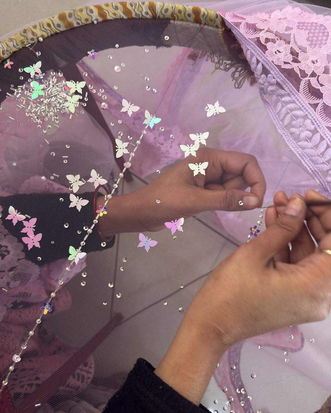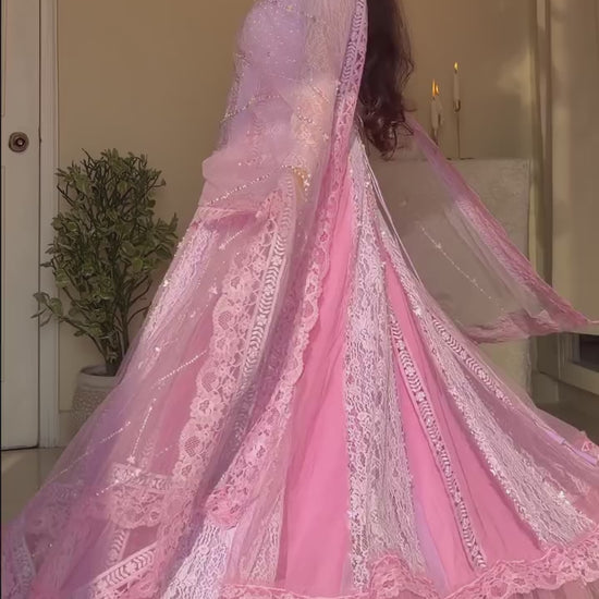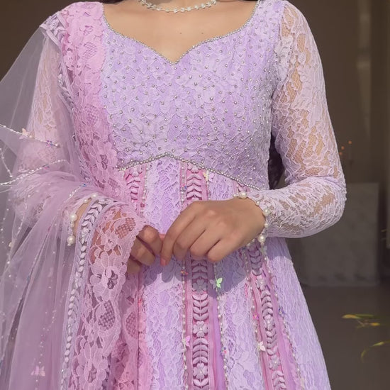 ✨Lace and handwork details all over anarkali and dupatta